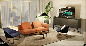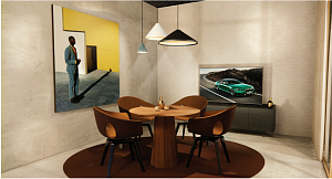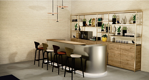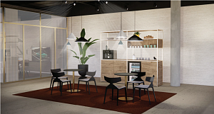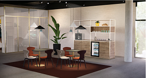 The selected high-quality furniture has a modern and equally timeless design language. Front and body surface made of HPL, Dark Brown Oak.