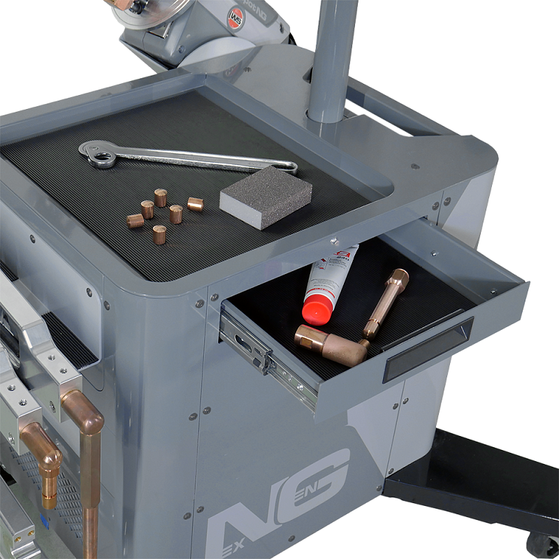 The mobile, water-cooled resistance spot welder NexGen for body repairs features state-of-the-art control technology. It automatically detects joint conditions and automatically sets all necessary welding parameters to ensure a safe and precise welding process.