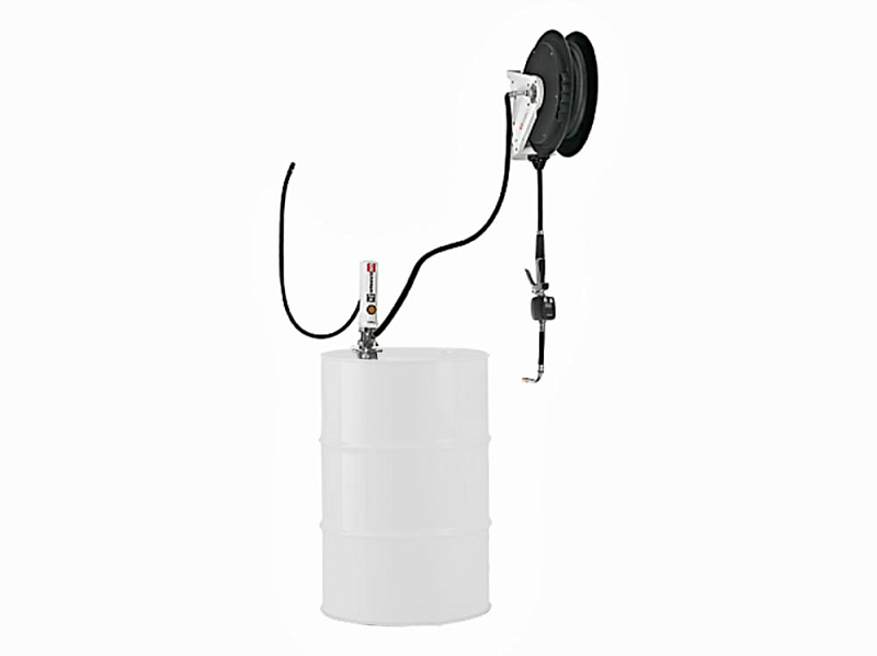 The hose reel with 10 m hose provides a certain degree of mobility despite the fixed oil drum position.